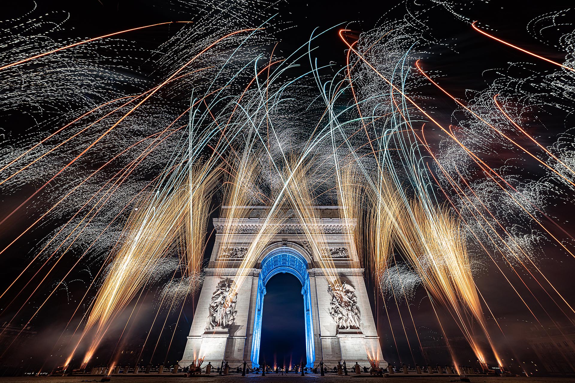 Créations pyrotechniques chorégraphiées, pensées comme des œuvres visuelles et musicales sur mesure.