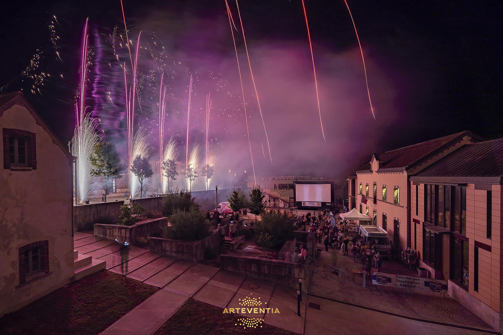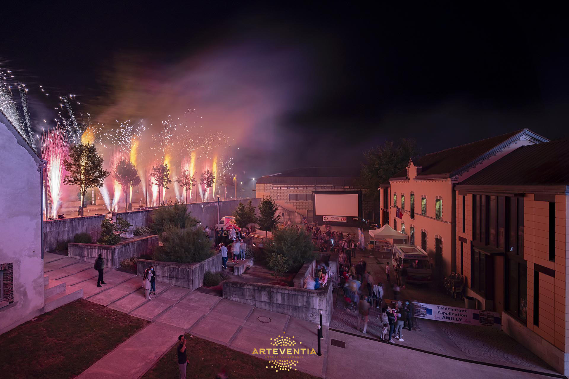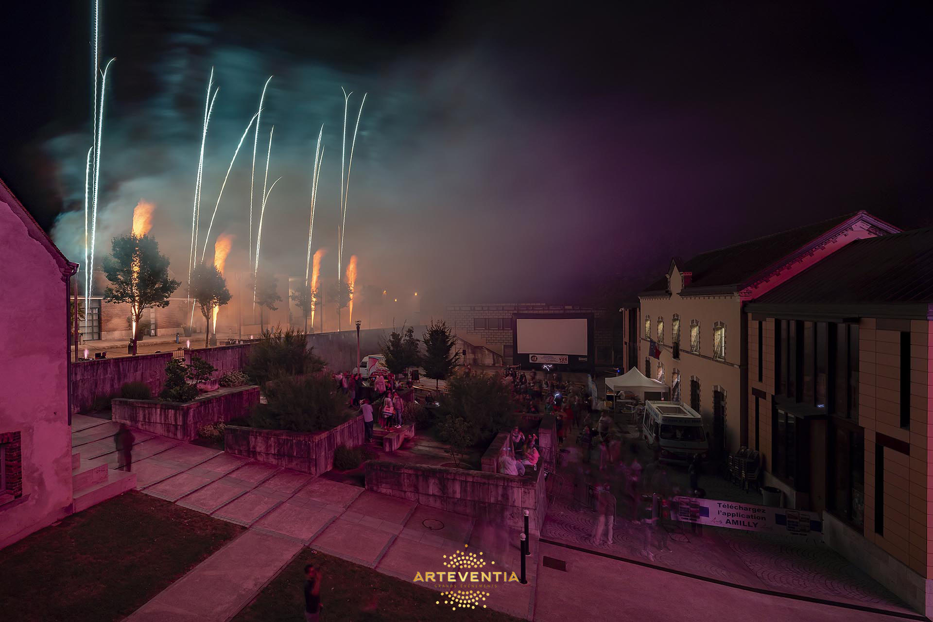 Le 18 août 2021, à l’occasion de la fête “Place au Ciné” à Amilly, ARTEVENTIA a conçu et réalisé le bouquet final de la soirée, imaginé comme une véritable mise en scène immersive autour du public.