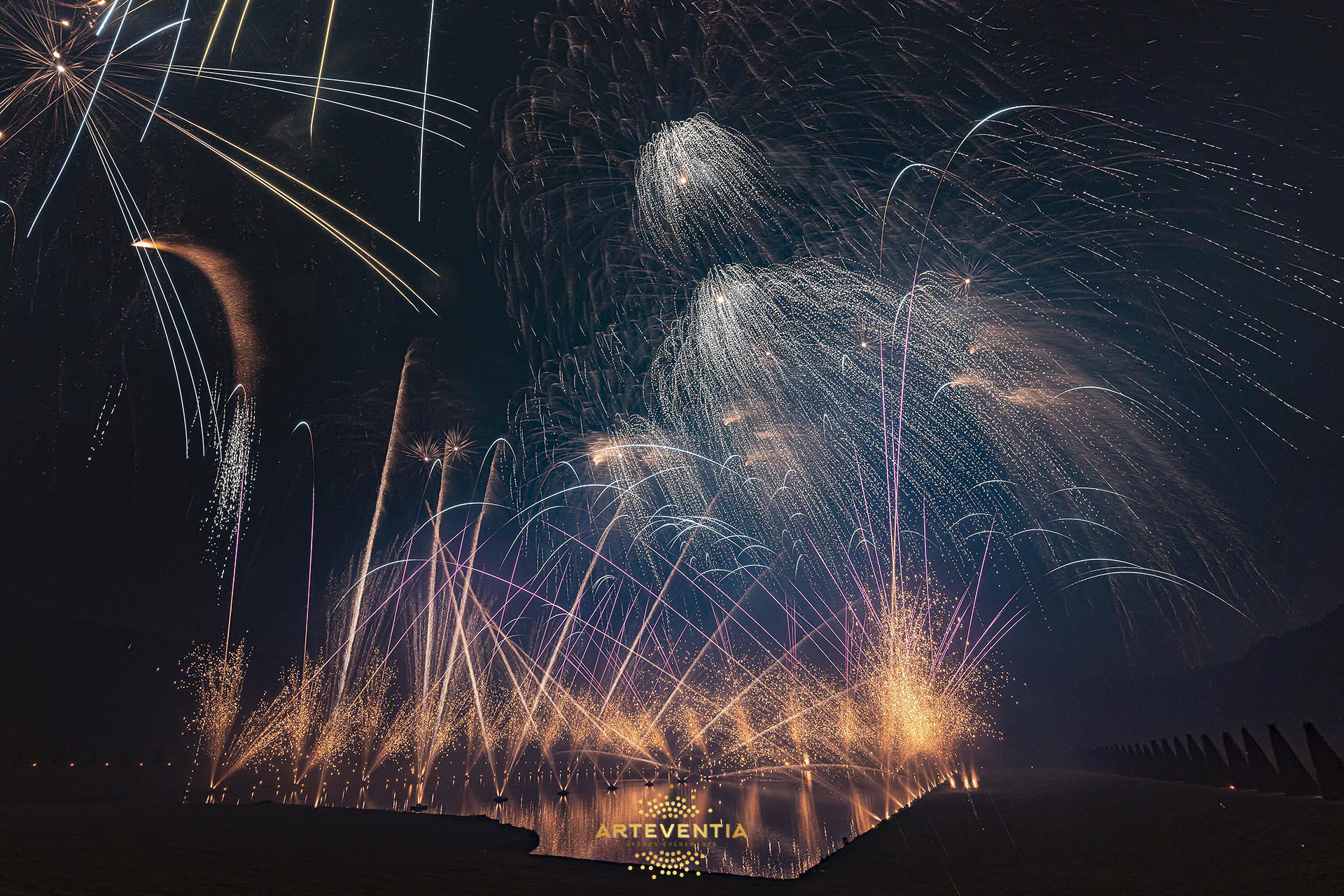 Cette approche, entre héritage culturel et modernité technique, illustre la signature artistique d’ARTEVENTIA : un feu d’artifice pensé comme une œuvre visuelle et sonore, et non comme un simple enchaînement d’effets.