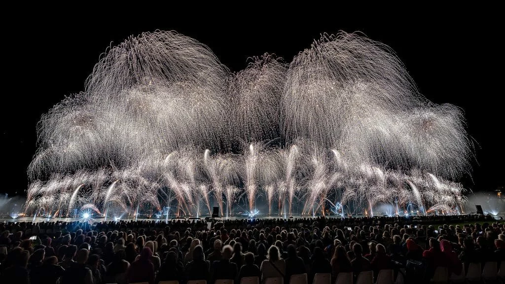 La presse nationale évoque un feu d’artifice “hors norme”, mêlant scénographie monumentale, lumière, musique et pyrotechnie dans une expérience immersive rassemblant des centaines de milliers de spectateurs.